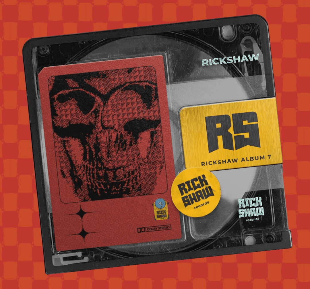 RICKSHAW, a branding concept for a sound studio. I used the Indian rickshaw as a clever link to their names and paired it with a vinyl disc to represent music, energy, and a unique cultural vibe.